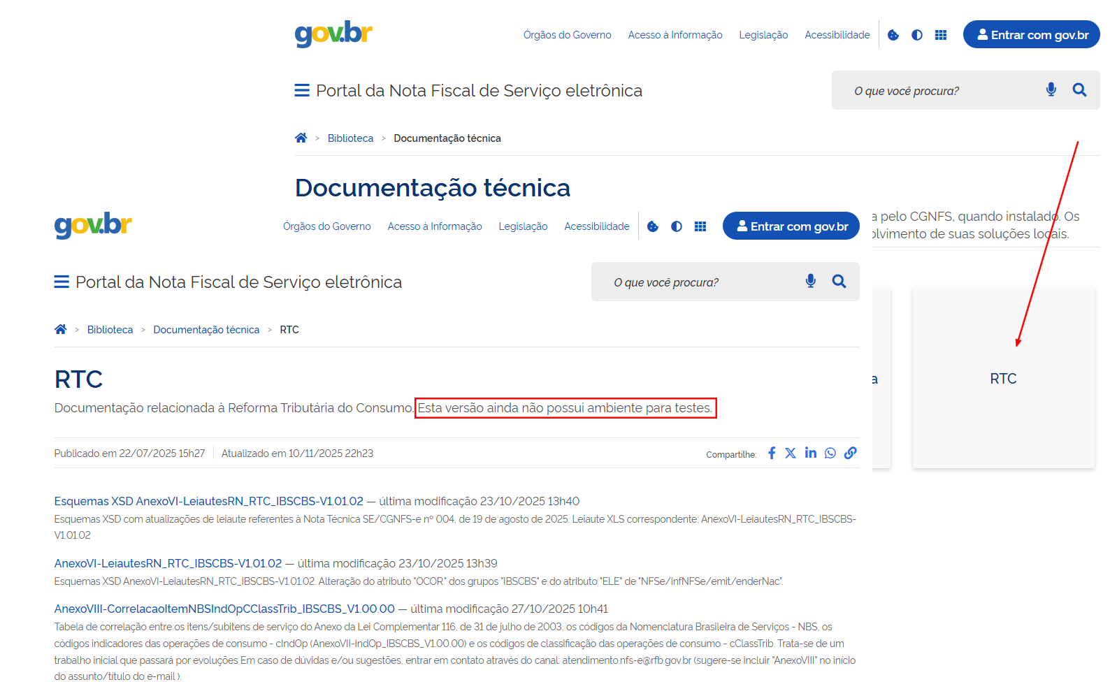 Observação: Essas atualizações ainda não contemplam os novos grupos de informações relacionadas aos novos tributos incidentes sobre o consumo e que serão destacados na NFS-e: IBS e CBS (Nota Técnica SE/CGNFS-e nº 004, de 19 de agosto de 2025). Em breve será divulgado cronograma para o piloto de testes da Reforma Tributária do Consumo na NFS-e, a ser realizado no ambiente de Produção Restrita.