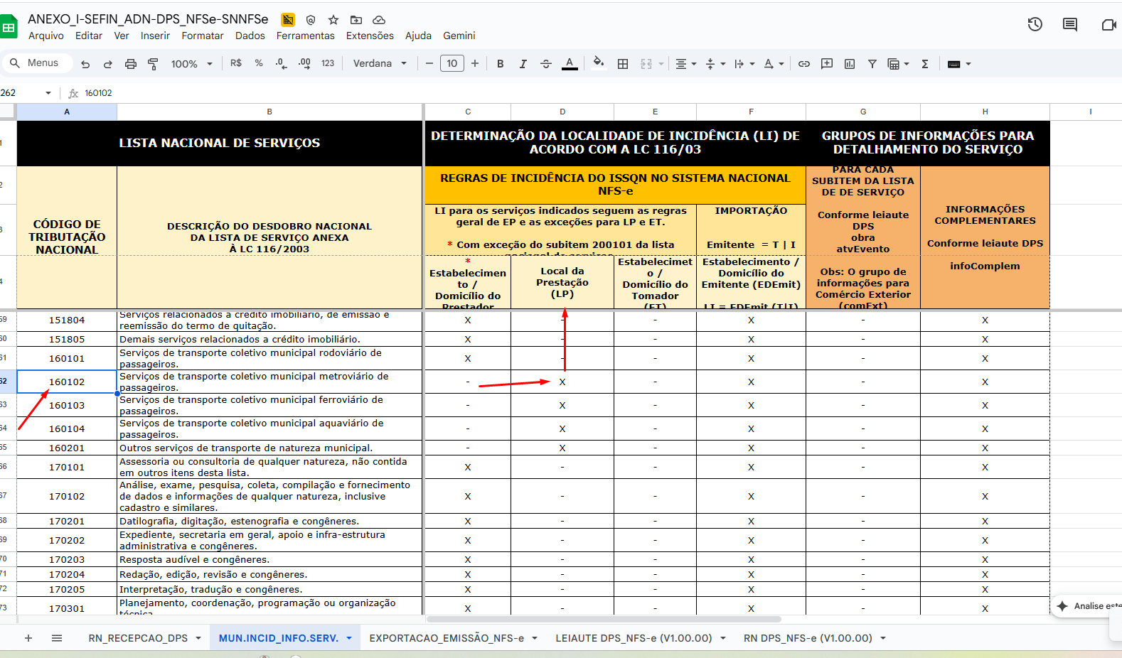 No Anexo I você tem a aba com os códigos que indicam o local de incidência do ISS. Para este código a incidência é o local da prestação, veja imagem abaixo: