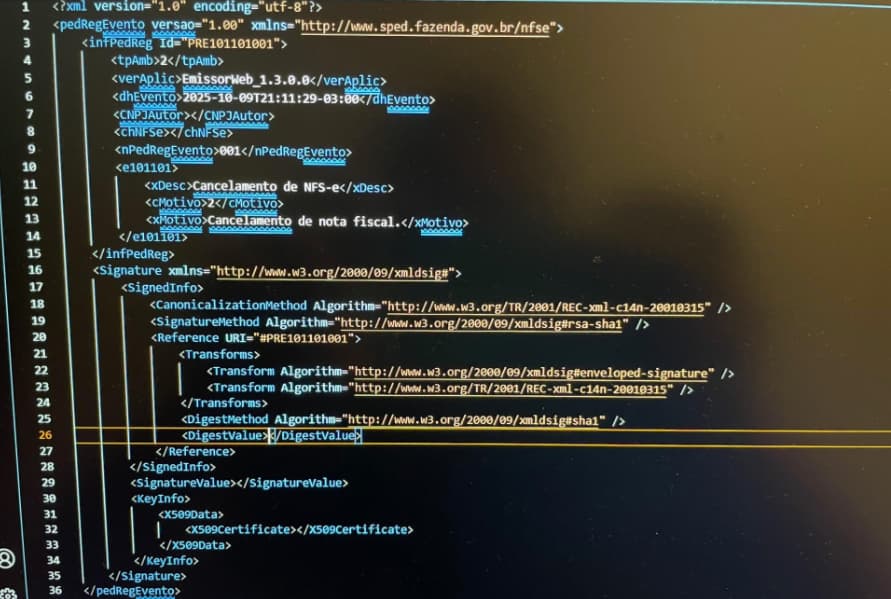 Se possível, poderiam compartilhar um exemplo de XML (envio e retorno) de um cancelamento autorizado para que eu possa comparar e identificar onde pode estar a divergência?