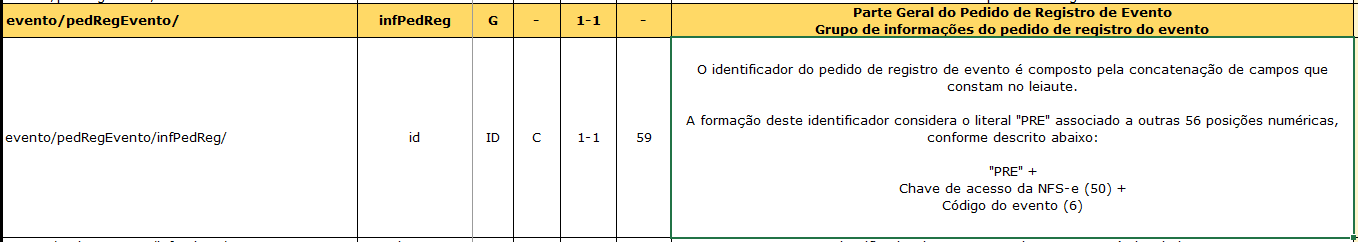 Agradeço o retorno Bruno. Só uma dúvida ainda resta: Aqui na documentação diz que seria apenas 59 posições sendo PRE + Chave de acesso (50) + código do evento (6), então estou olhando a doc desatualizada?