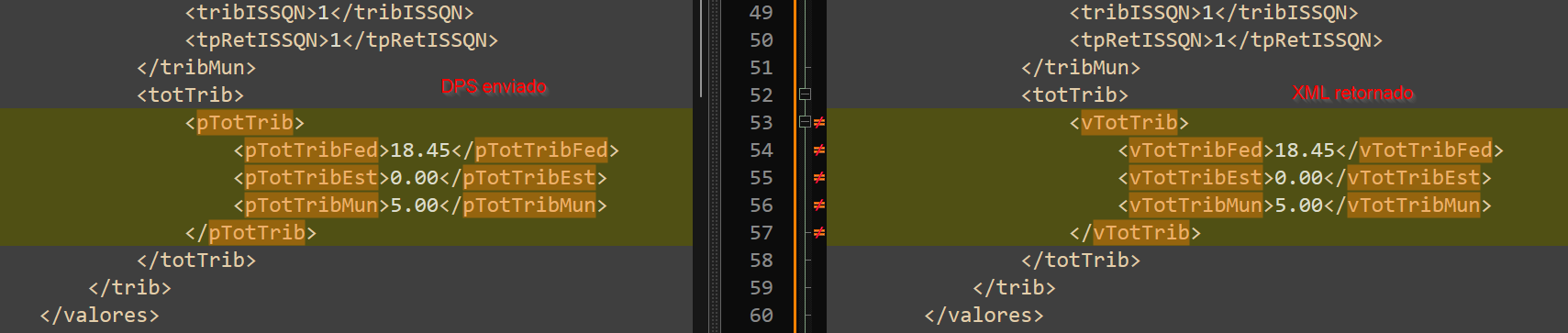 Porém na emissão via rota, mesmo enviando as tags de percentual de alíquota, é retornado como valor dos impostos.