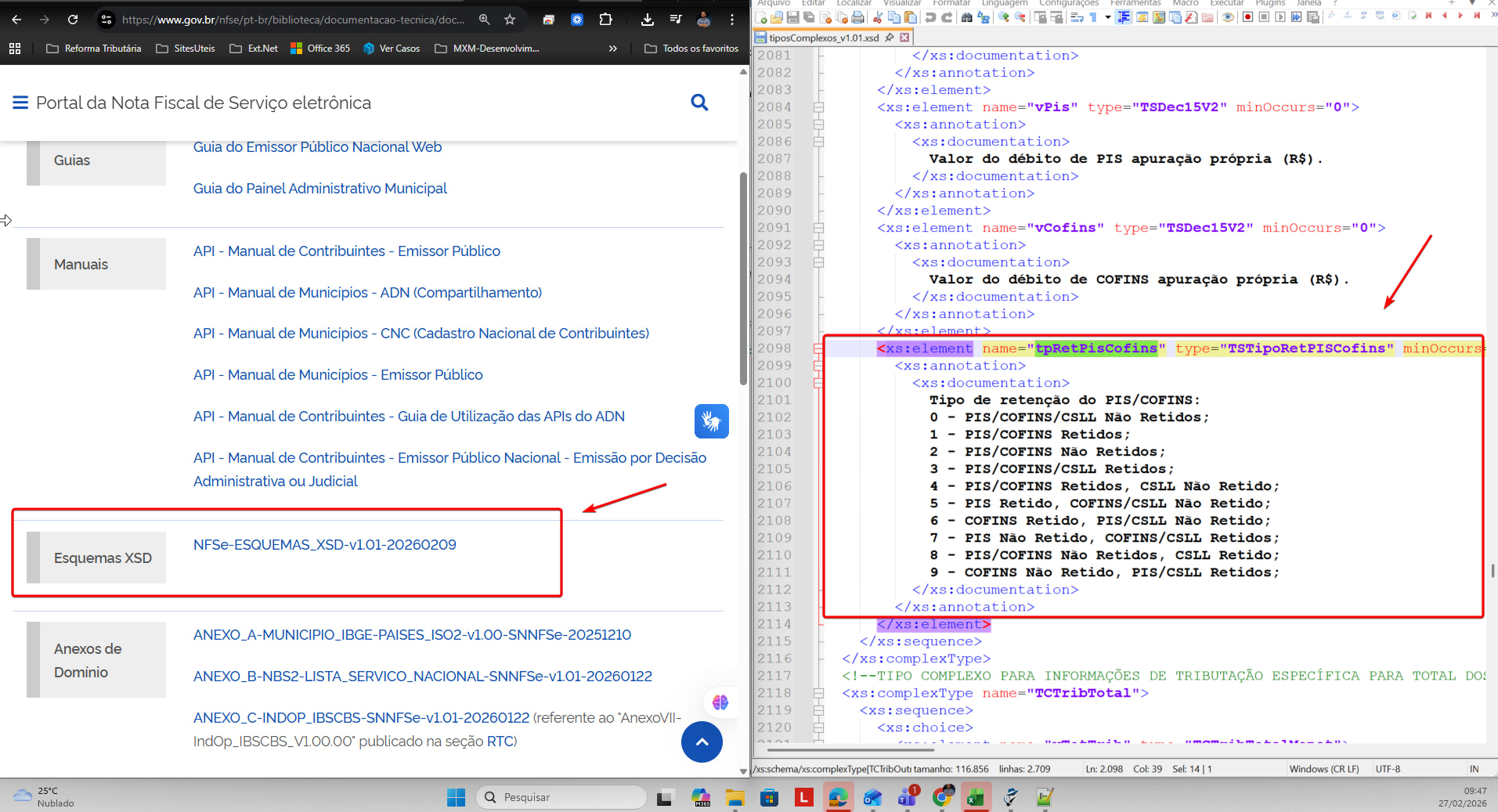 bom dia @MuriloMenegasso, sobre o campo <tpRetPisCofins>, não sei se percebeu. Temos um xsd de 09/02/2026, que possui todos os valores da nt 007.