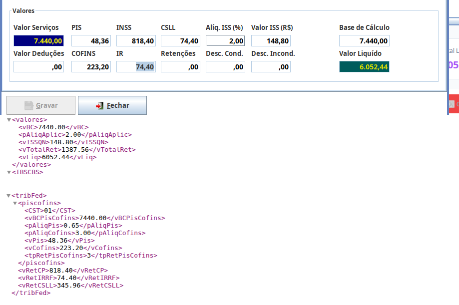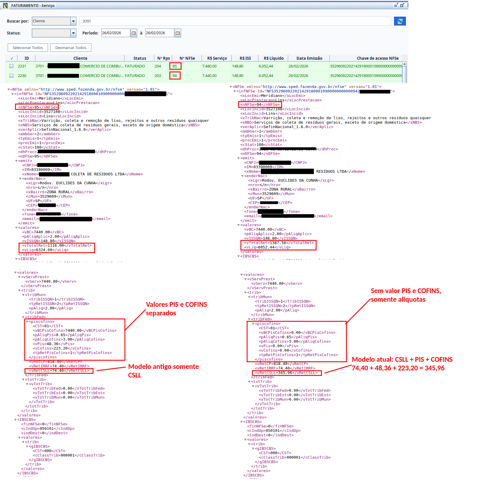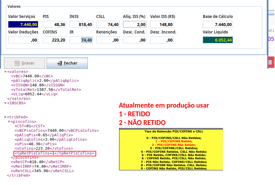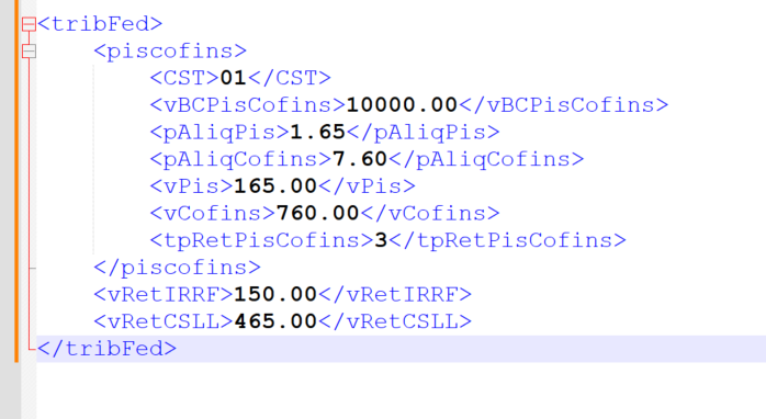 Ou seja, o valor de R$ 465,00 informado em <vRetCSLL> corresponde à soma das retenções de PIS, COFINS e CSLL efetuadas na fonte.