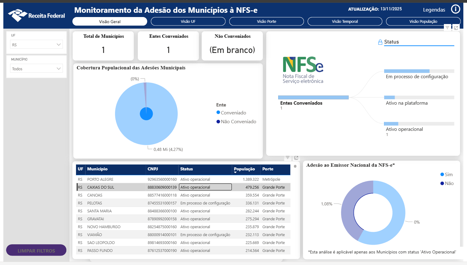 Desta vez tentando emitir para o estado de SC e o município de Cocal do Sul, sendo que é aderente ao Ambiente Nacional e Emissor Nacional.