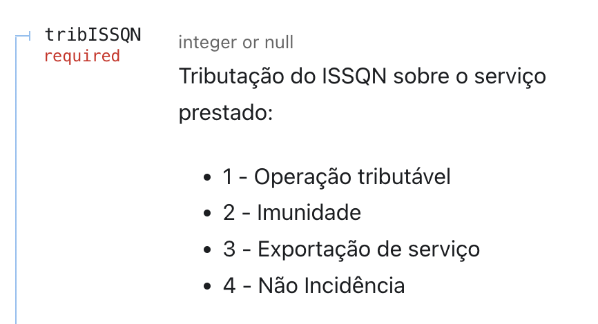 Tentamos também alterar o valor do campo tribISSQN para os demais valores mas a rejeição foi a mesma.