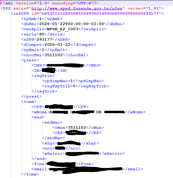 Já fez um teste enviando a tag xNome do prestador? Talvez seja isso.
