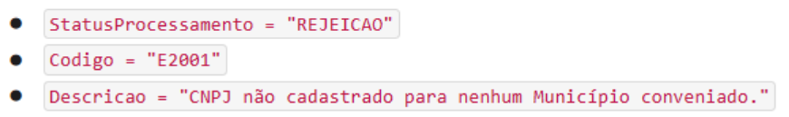 Estou tentando acessar, via API, as notas fiscais de serviços tomados vinculadas ao CNPJ da empresa, mas na consulta retorna a mensagem: “CNPJ não cadastrado para nenhum Município conveniado”.