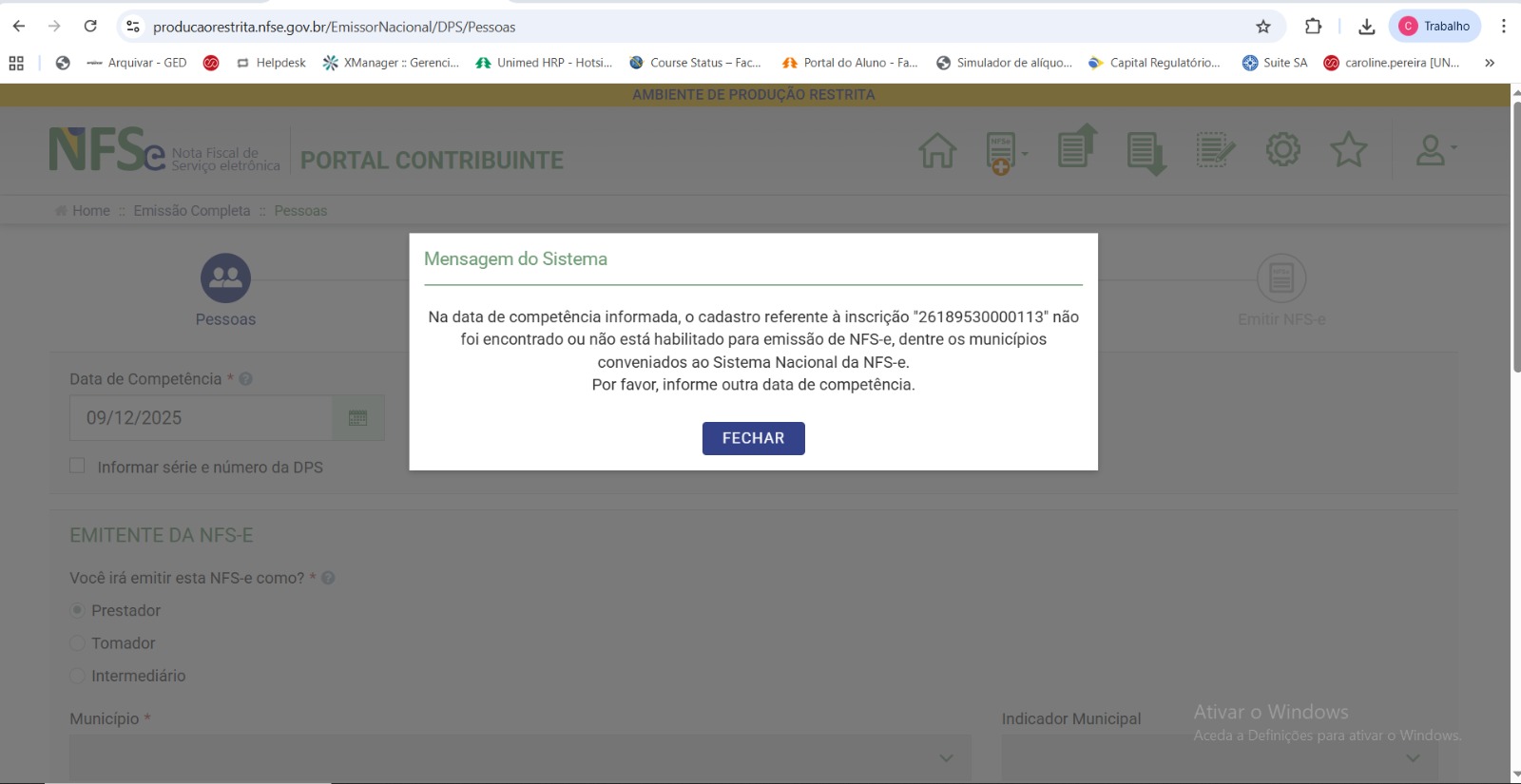 Desde o início da migração para o novo ambiente nacional, a Unimed vem enfrentando dificuldades para realizar a emissão de NFS-e pelo Portal Nacional, apesar de o Município de Curvelo já se encontrar 100% integrado ao Módulo de Administração Municipal (MAN) e sincronizado com a base cadastral da Receita Federal do Brasil.