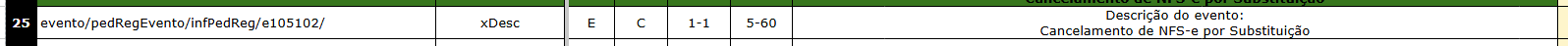 A questão é que a frase ‘Cancelamento de NFS-e por Substituicao’ é prevista na documentação, como visto abaixo (anexo anexo_ii-sefin_adn-pedregevt_evt-snnfse-v1-00-20251226.xlsx):