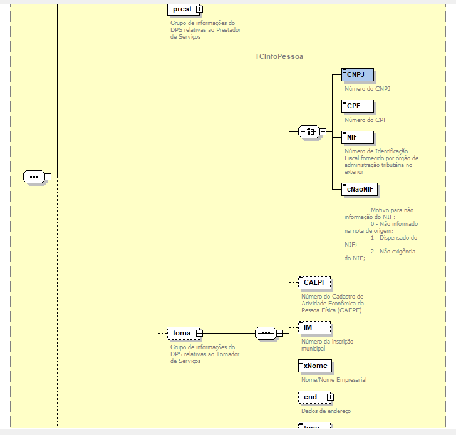 Vi aqui que a primeira tag de tomador não é IM e sim uma escolha entre (CNPJ, CPF …), como mostra a imagem. Inclusive, IM é opcional.