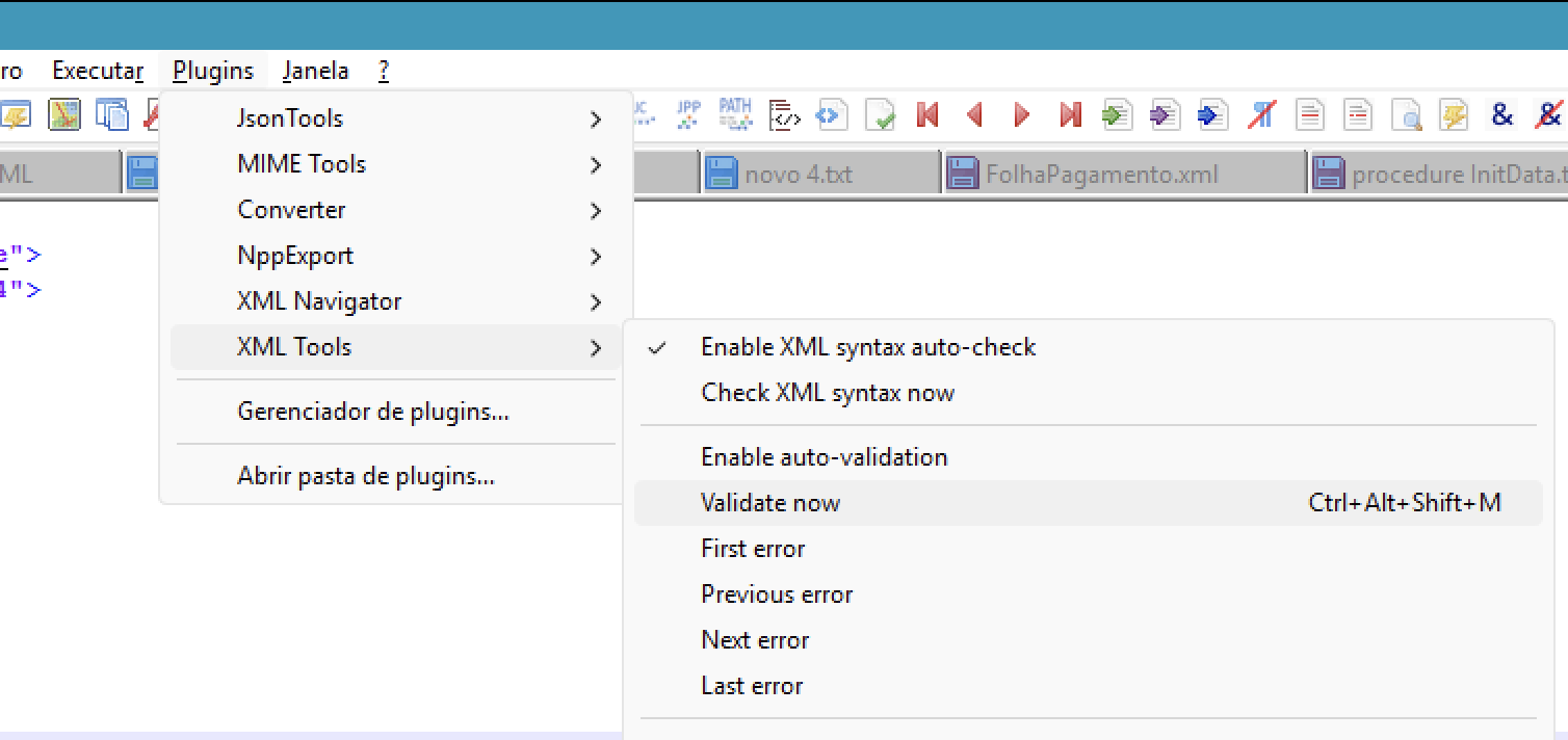 O arquivo é o DPS_v1.01.xsd e depois de instalar o plugin XML tools no NP++, faça conforme as imagens abaixo.