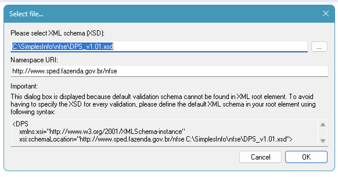 Opção de validar o XML apontando o XSD