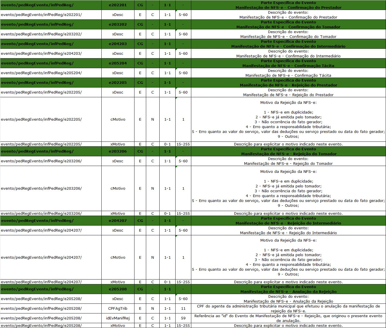 Todos estes são os grupos no leiaute de PEDIDO DE REGISTRO DE EVENTO, disponíveis.