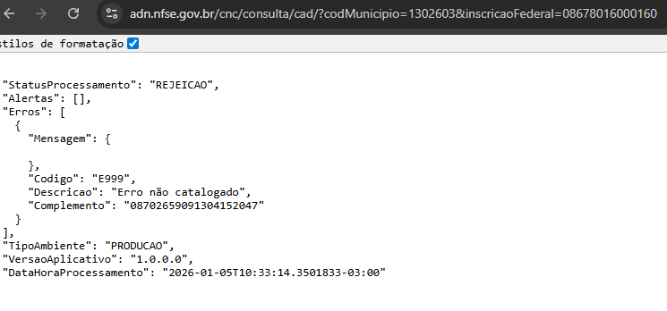 Alguma novidade de Manaus, apesar dos diversos testes em homologação com NFSE aprovada no ambiente de produção apresenta a rejeição E0116. Já enviei o email indicado, mas não sabemos o prazo da devolutiva.