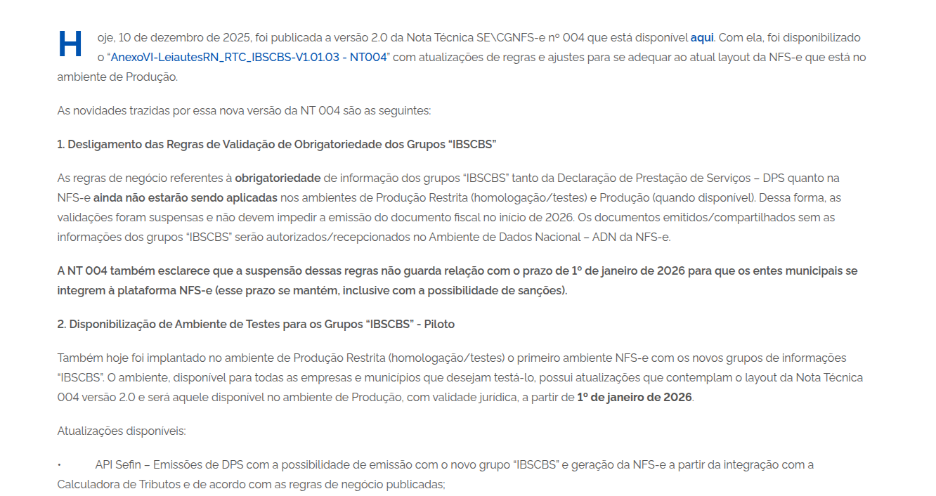 Minha pergunta é referente a publicação da atualização na API. Estava previsto a publicação hoje, porem estou emitindo notas com o schema 1.0 normalmente, logo eles não atualizaram conforme prometido