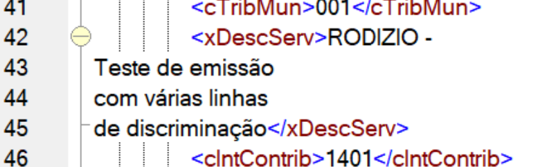 ] para representar as quebras de linha. Não testei mas acredito que exista compatibilidade devido ao padrão do próprio XML. Para as notas Fiscais de produtos, por exemplo, ele é utilizado.