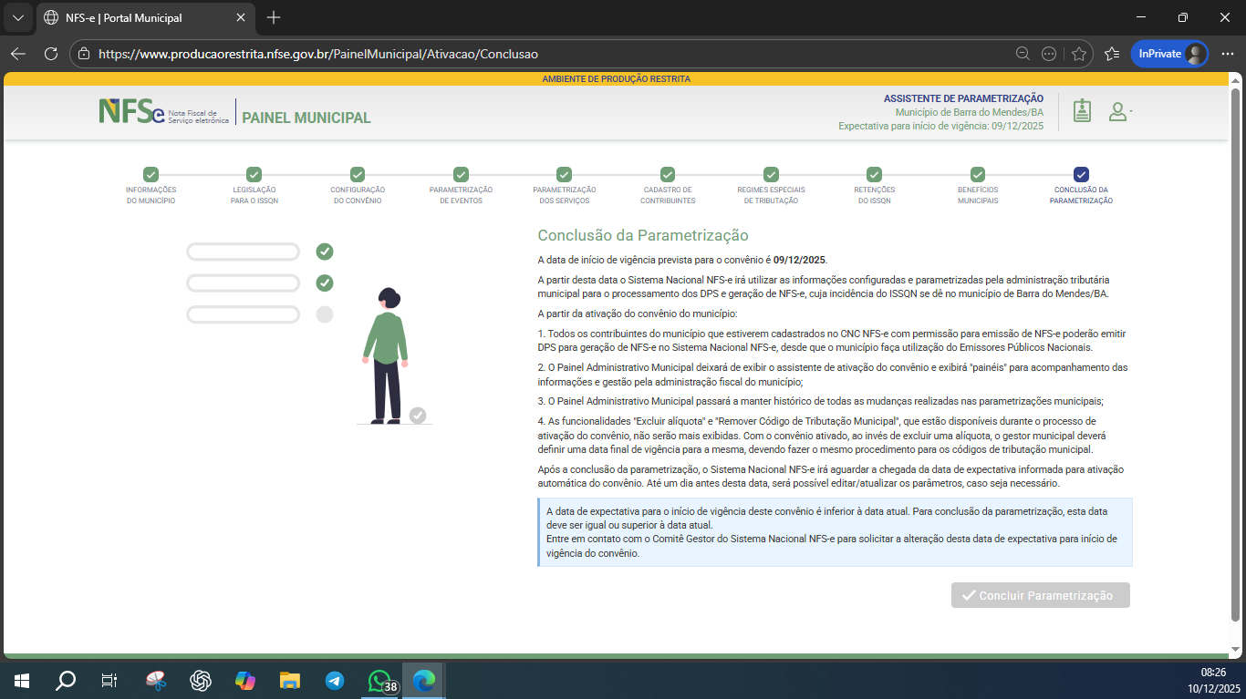 Foi solicitada a alteração da data da expectativa para 08/12/2025 junto ao comitê gestor, porém não estamos conseguindo finalizar a parametrização e o portal não acusa erros, o que fazer?