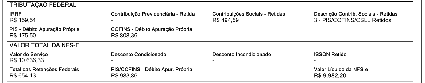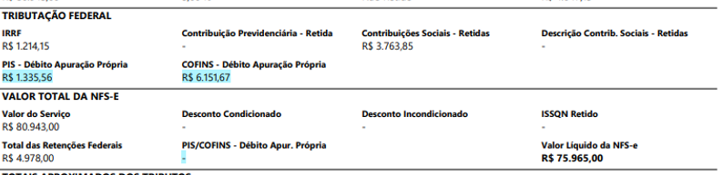 Estamos com problemas no DANFSE, onde o PIS e COFINS (apuração própria) estão corretamente destacados nos campos próprios no bloco TRIBUTAÇÃO FEDERAL, mas no bloco totalizador está carregando em branco.